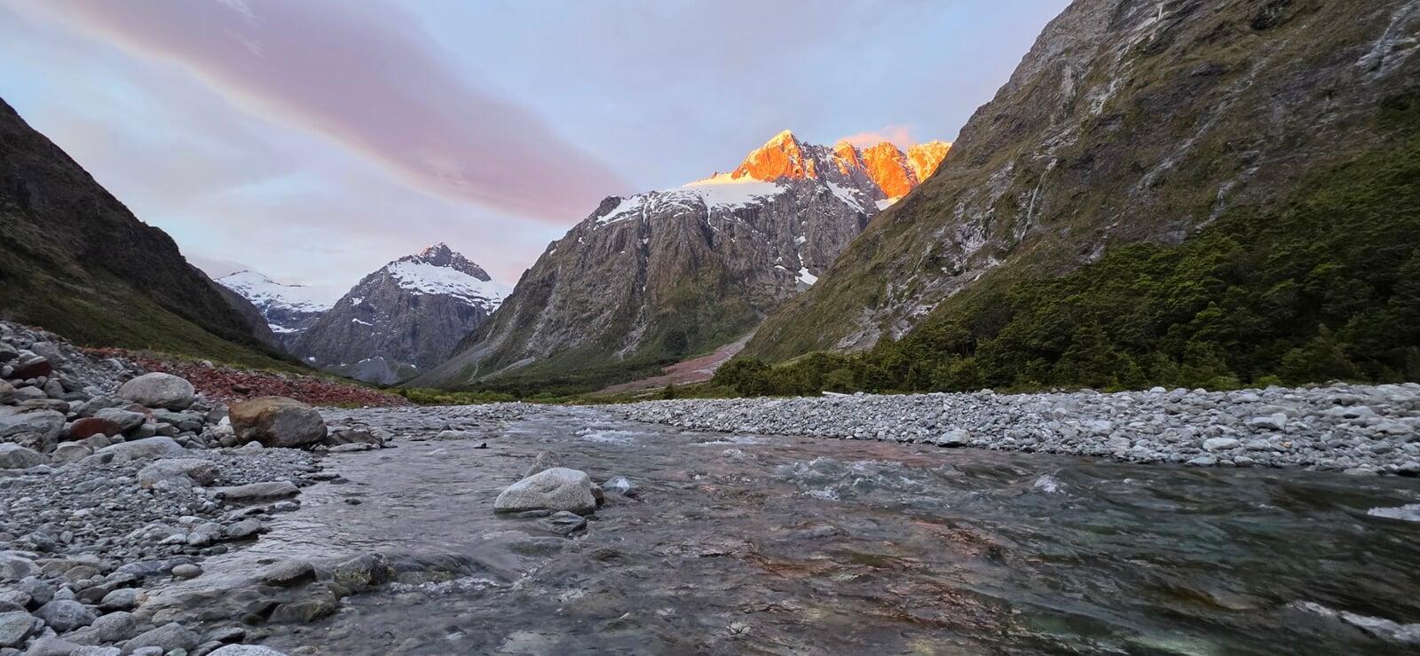 At maybe 4:30am I decided to turn around and start returning to the car, walking more briskly than the walk in - I wanted to have another go for Rock Wren. It was at this stage that I spotted a Kiwi on the track, but it quickly moved into vegetation and became hard to see. I observed it for a bit with some red light and the thermal and then eventually lost it in the ferns. A little disappointed I returned to the car, slightly bewildered by the number of introduced blackbirds and song thrush and headed back to the Homer Tunnel site where I searched again unsuccessfully for the Rock Wren until the light was bad.