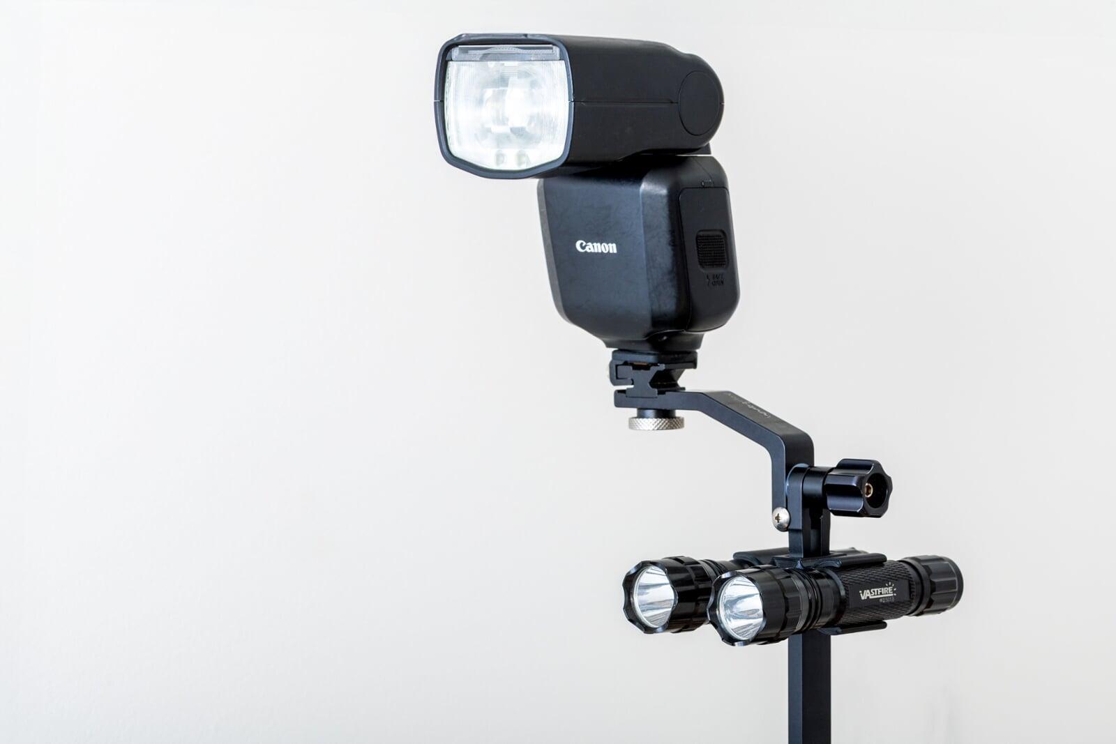 If solo, use a BeamMount Pro on a tall tripod or a light stand with a tilt and swivel adapter for your flash. If you have an assistant, mounting the torch with a BeamMount to the flash and asking the assistant to point the torch at the subject is the most foolproof, but of course just getting them to hold the torch and flash will work too.