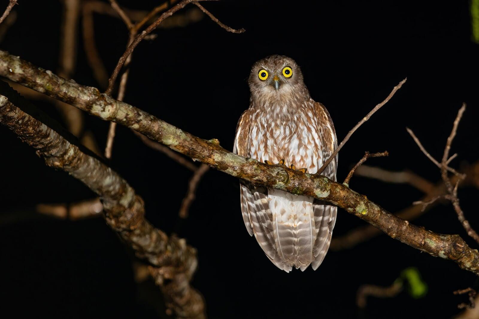 We called it a day when the thunderstorm started and went and checked into a hotel in Soe and had dinner. After dinner we returned to a nearby site on private land for some nocturnal work. Timor Boobook was straightforward and we heard several calling after a short walk into the forest. I had some initial success with photos and we also heard Timor Nightjar, so we switched to focussing on that pretty quicky. We successfully got quite close with the lights off using the thermal but when we turned on the lights it was occluded by vegetation and flushed immediately.